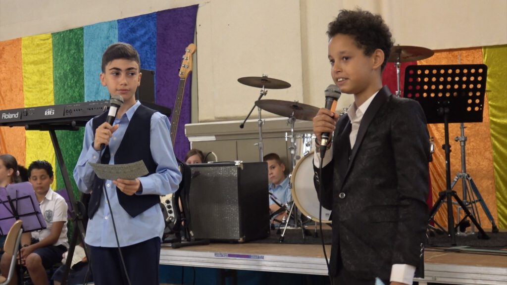 Zwei Schüler der 6. Klasse eröffneten und moderierten das Sommerkonzert der Christoph Földerich Grundschule am 17. Juli 2025 in diesem Jahr .   Kinder der 4. bis 6. Klassen präsentierten einen bunten Reigen von modernen Klängen und abwechslungsreichen Melodien mit dem Schulchor und Instrumentalgruppen in der Turnhalle .